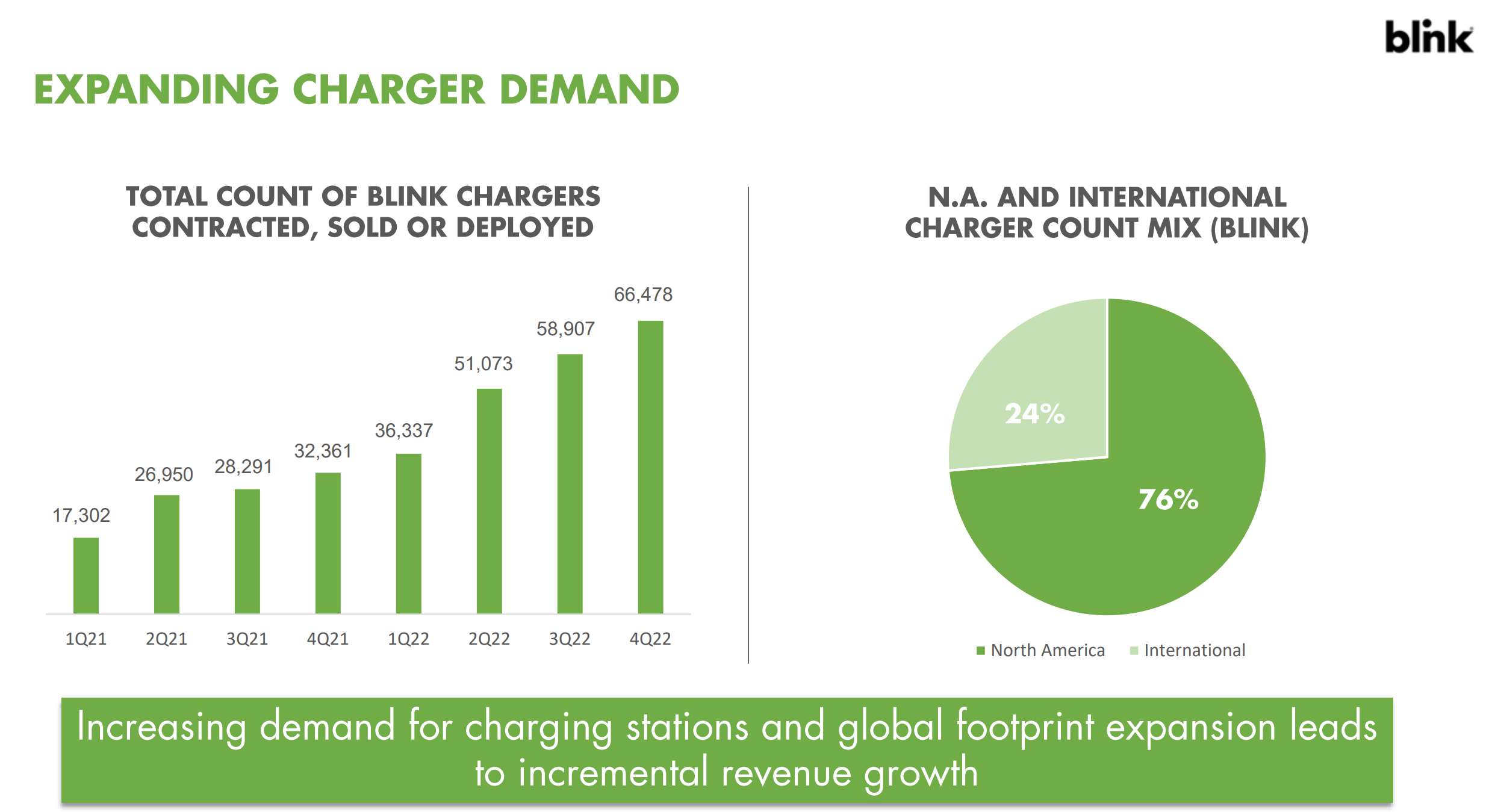 Blink's number of stations contracted, sold, or deployed grew to 66,478 units, an increase of 105% compared to the prior year.