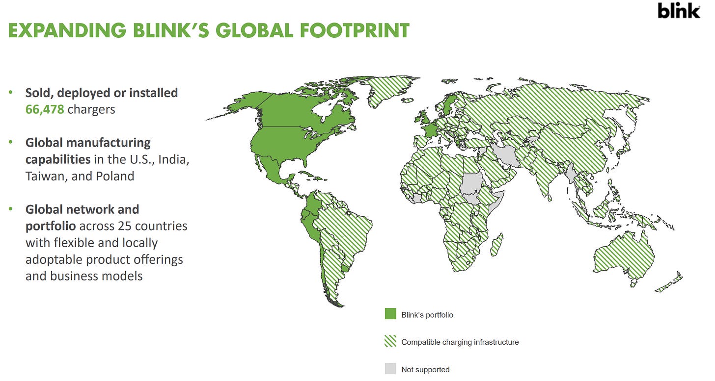 Blink services both residential and commercial locations, including an increasing number of fleets across the United States.